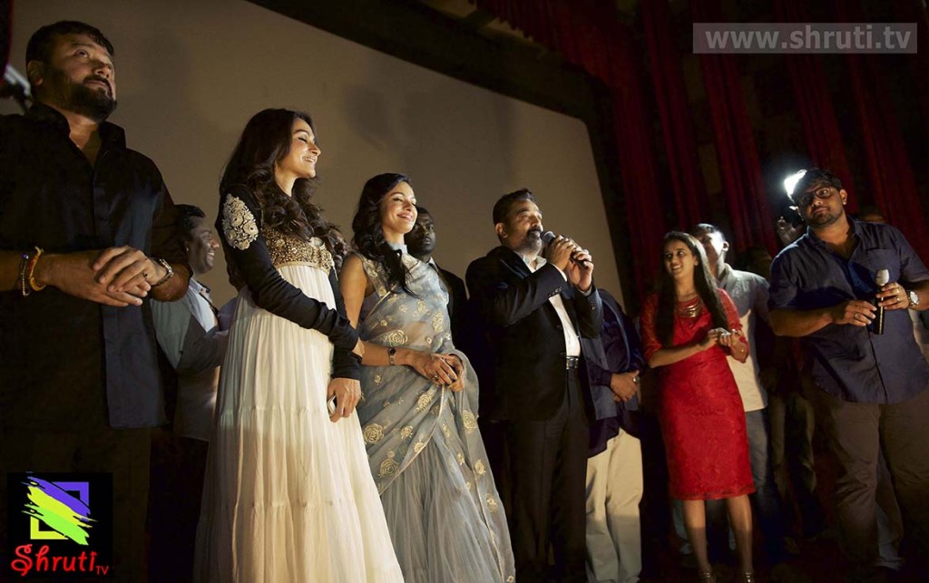 Tamil 89.4 FM , UAE, partnered by Daiwuk Films Mr.Kuttu Sivanandham organized the grand World premiere show of Uttama Villain in Dubai for Kamal Haasan fans.Uttama Villain Crew included Kamal Haasan, Jeyaram, Ramesh Aravind, Nassar, Andreah, Pooja Kumar & Music Director Ghibran joined Tamil 89.4 FM, UAE for world premiere show om 30th April 2015.