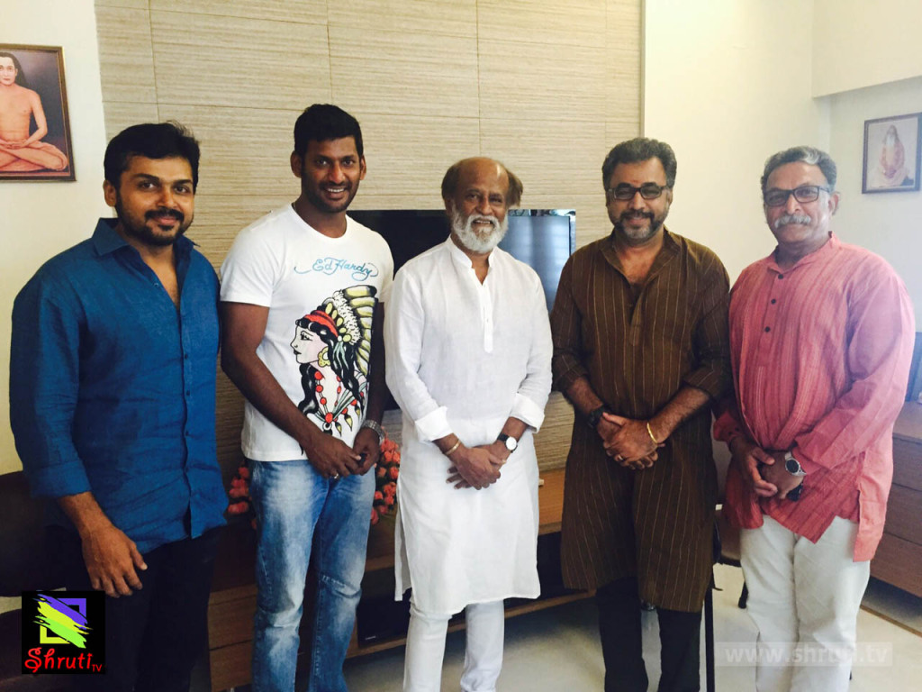 “Pandavar” Team Actors Vishal, Karthi met Actors Rajinikanth, Kamal Haasan
