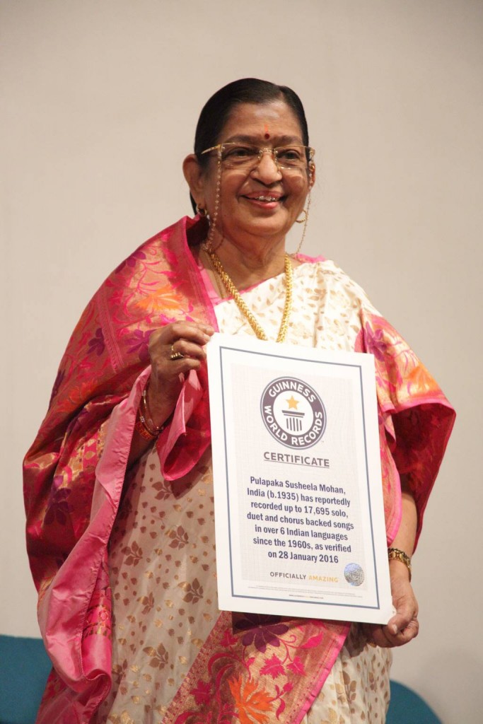The versatile singer felicitated with ‘Guinness World Records’ for reportedly recording 17,695 solo, duet and chorus backed songs in over 6 Indian languages, since the 1960s, as verified on 28 January, 2016.